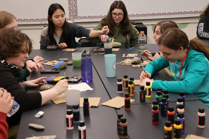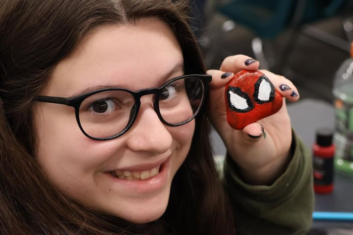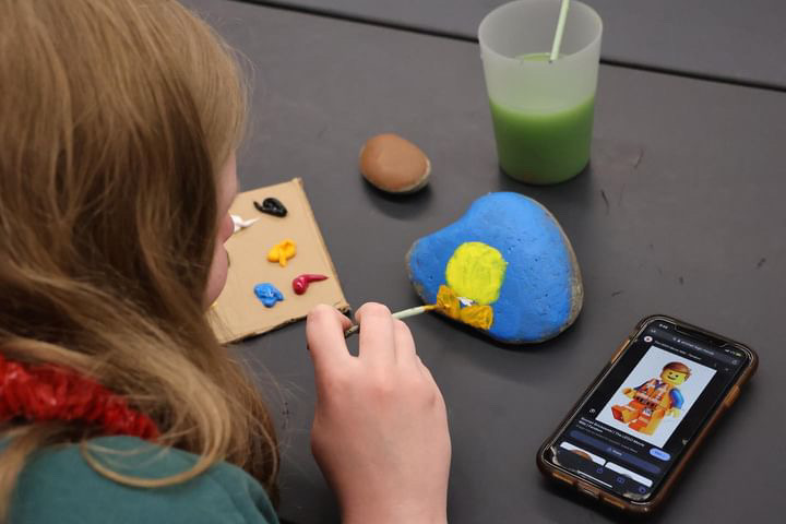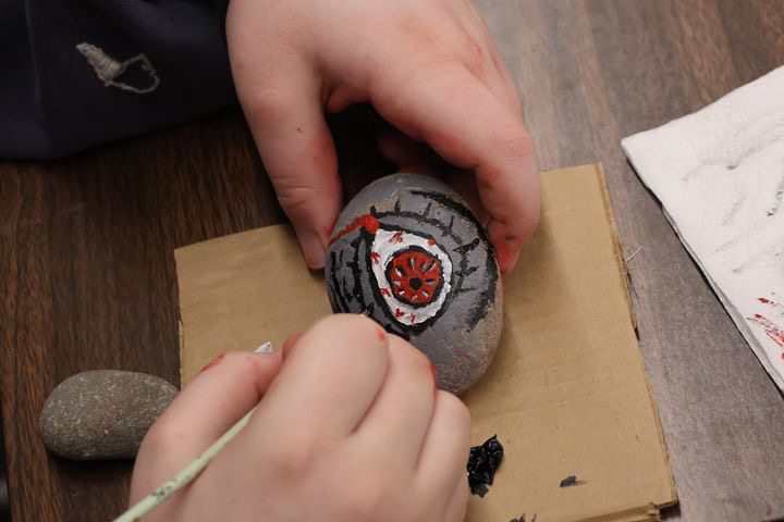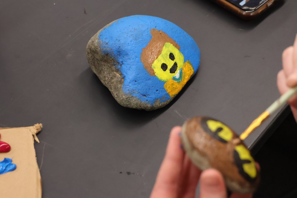 -Painting rocks to decorate community garden
