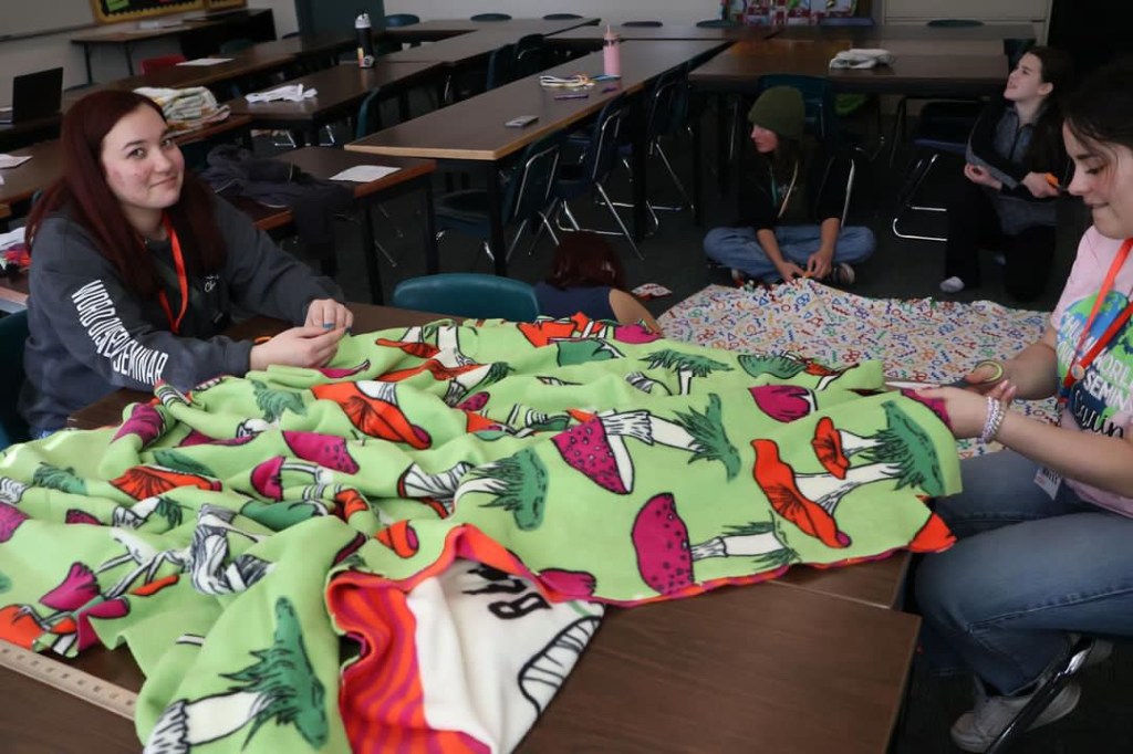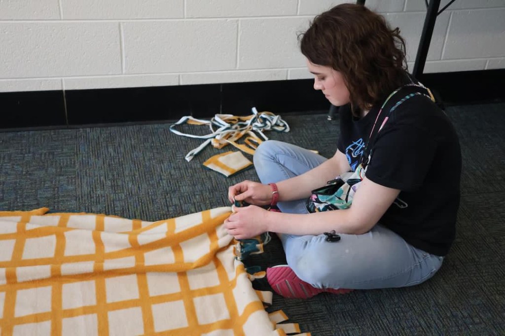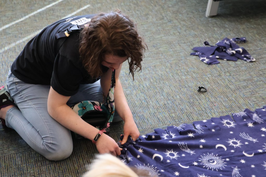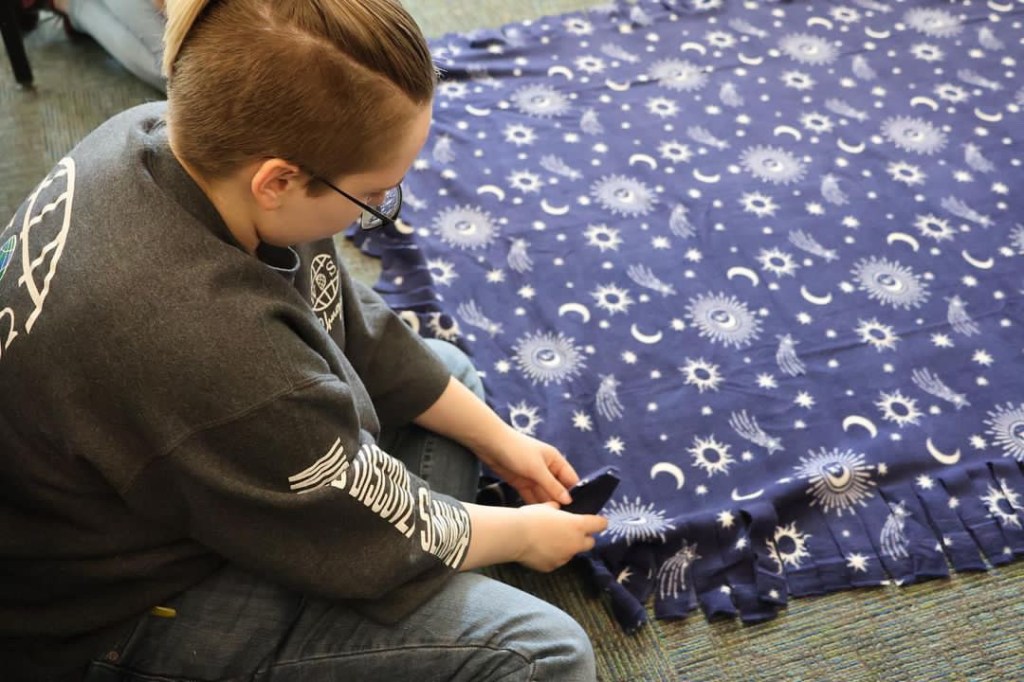 -Making tie blankets for residents of Covenant House