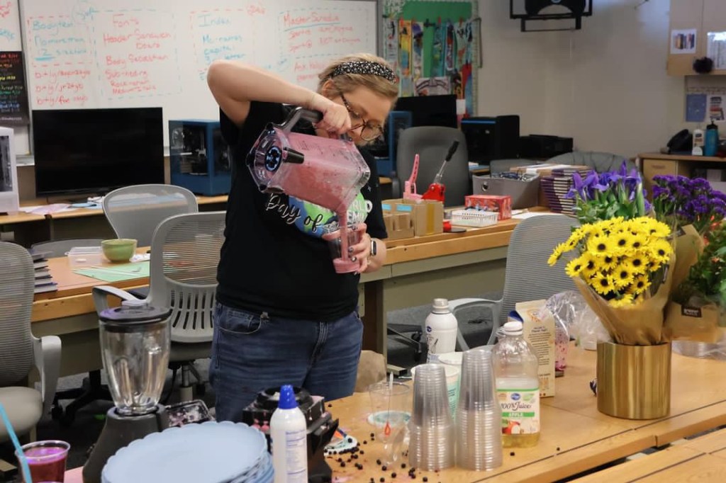 -Making smoothies for staff