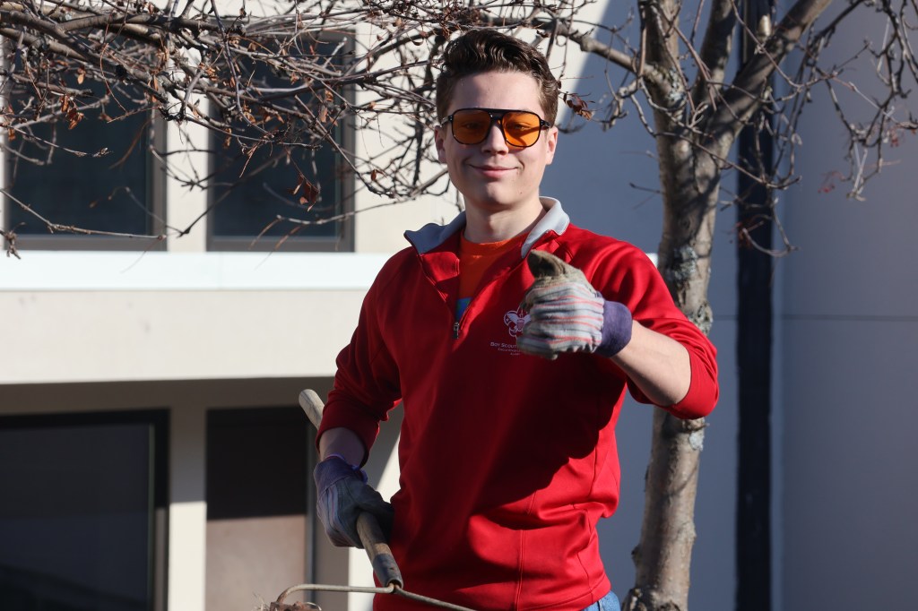 -Trimming broken limbs and doing landscaping in the courtyard