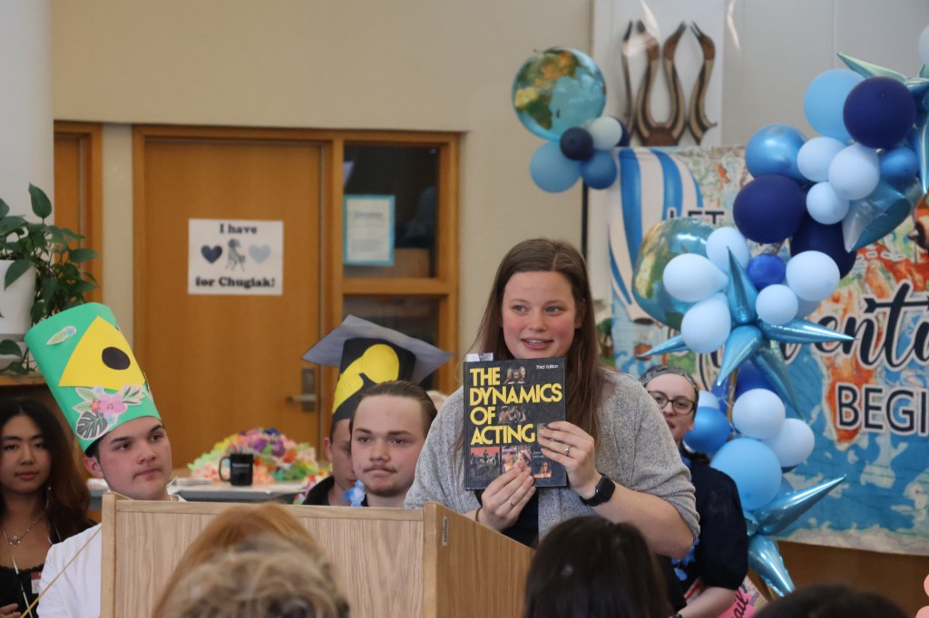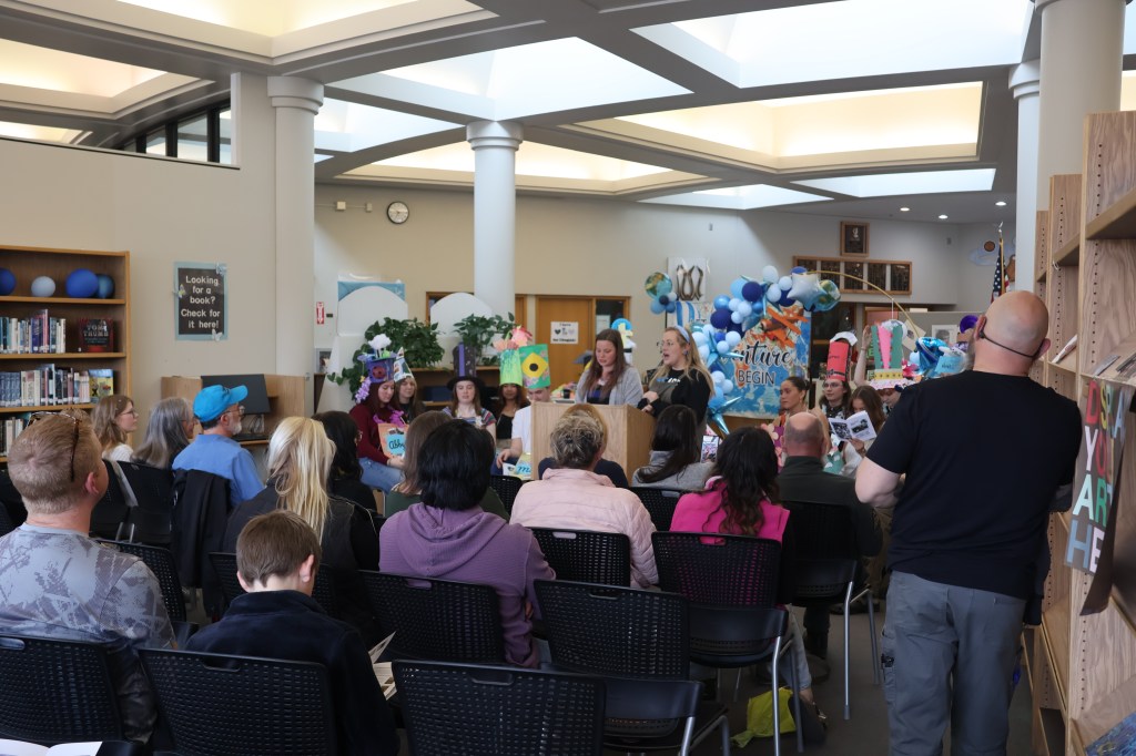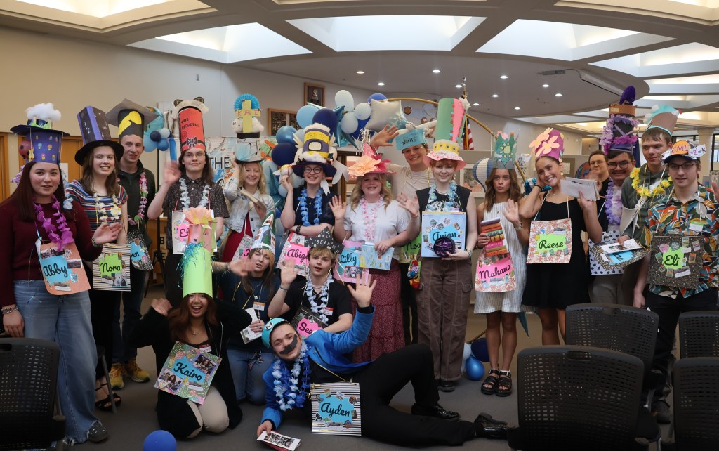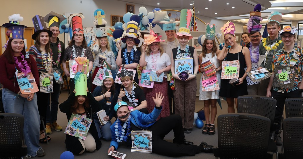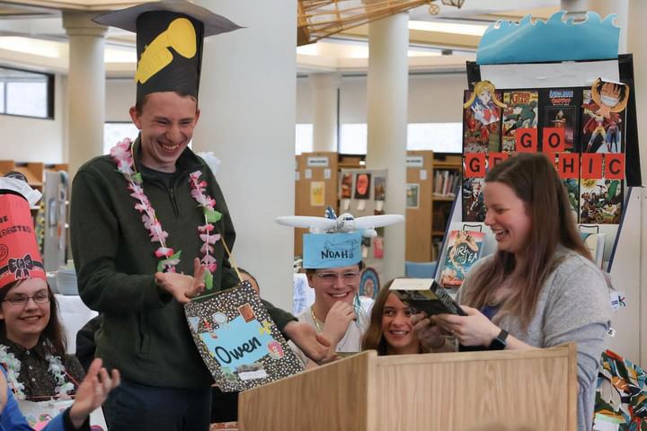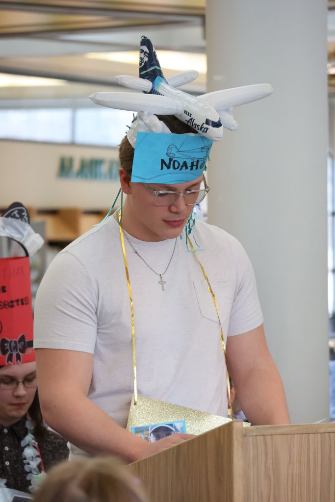 WDS Graduation was held in the Chugiak Library on Tuesday, April 30th. The graduates wore hats created for them by the WDS underclassmen, signs made by the teachers and signed by the entire program, and were given books chosen for them by the WDS staff and filled with personal messages from the teachers.