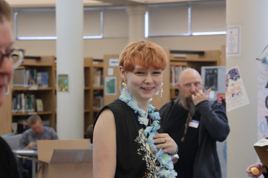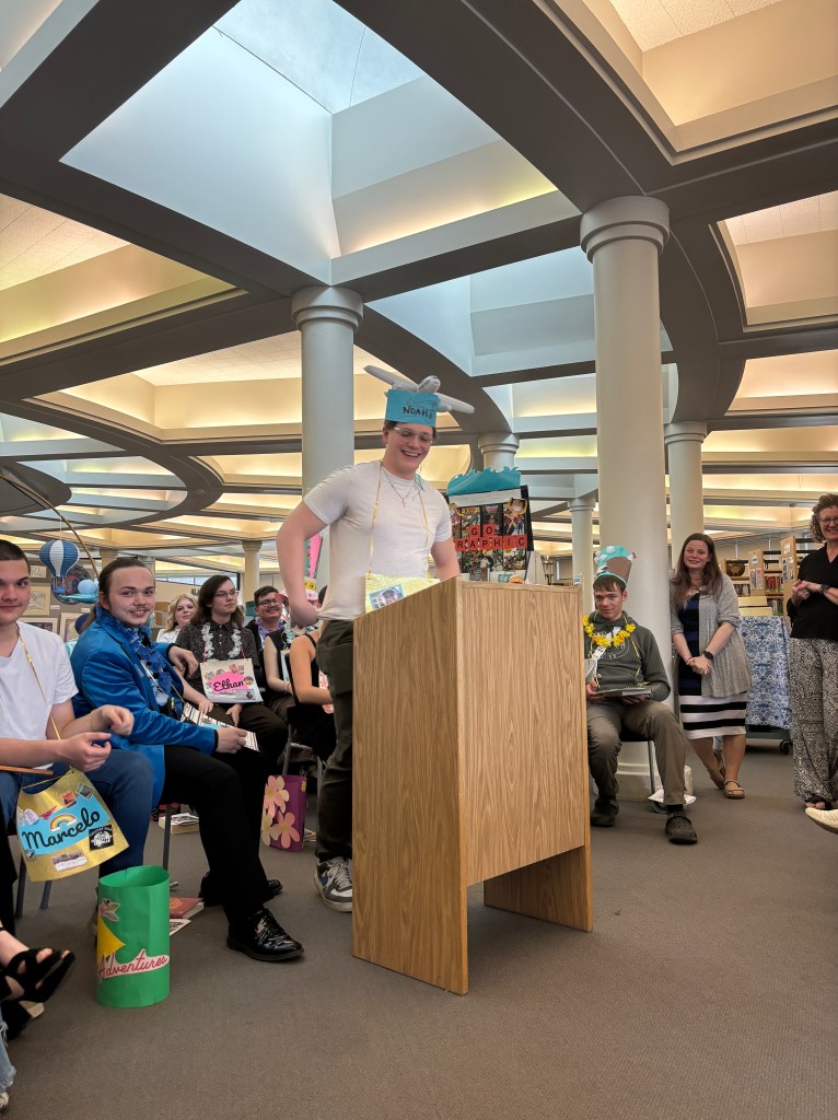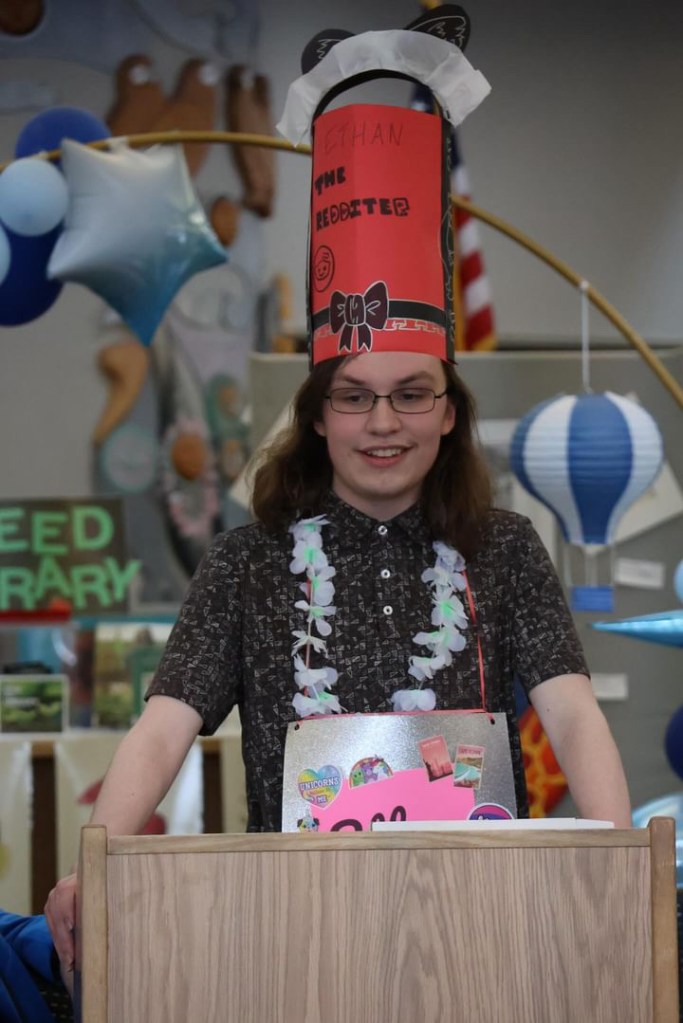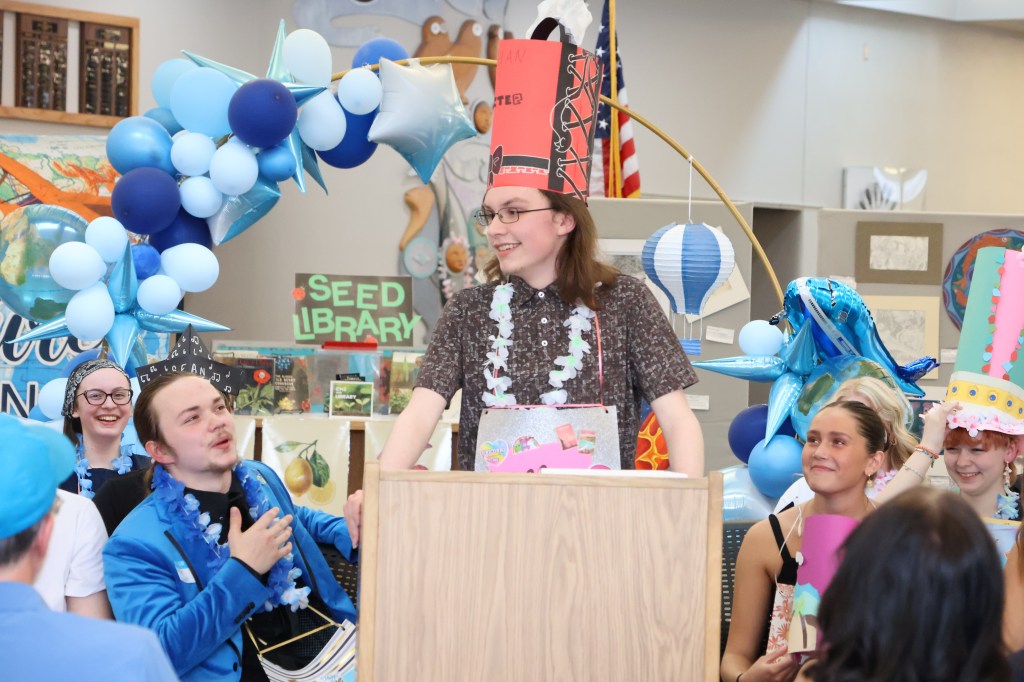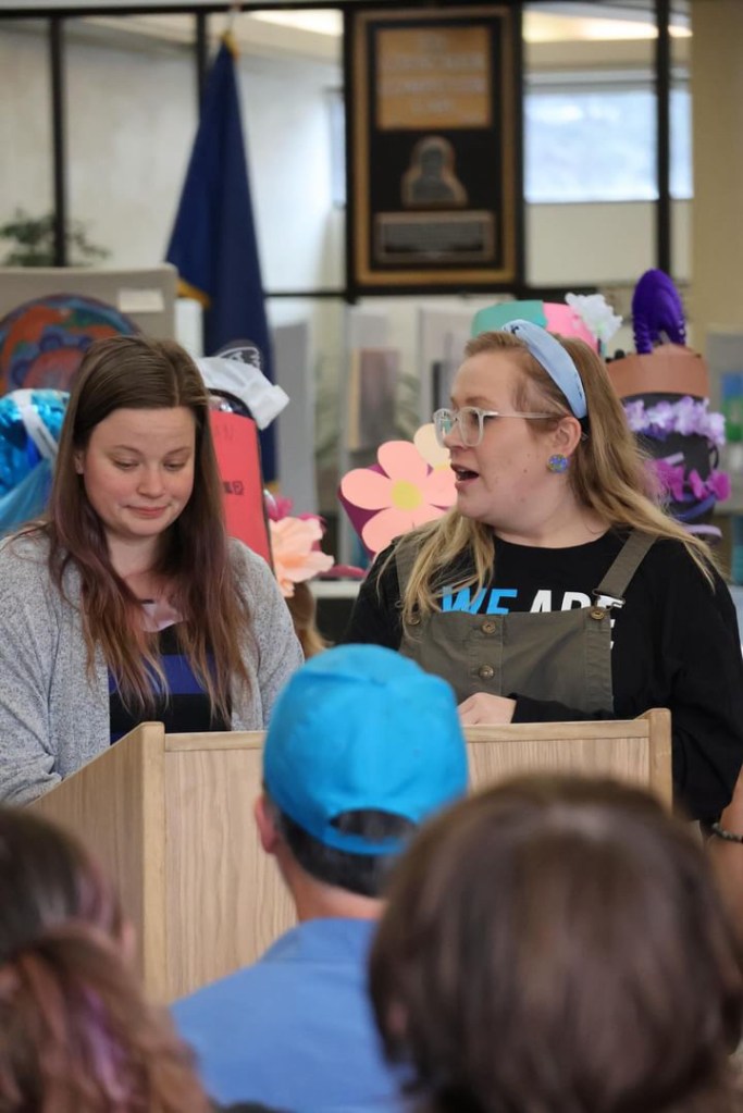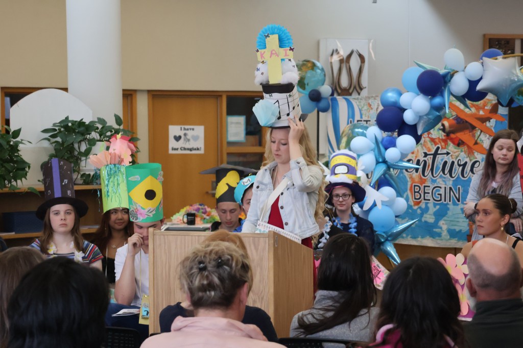 WDS Graduation was held in the Chugiak Library on Tuesday, April 30th. The graduates wore hats created for them by the WDS underclassmen, signs made by the teachers and signed by the entire program, and were given books chosen for them by the WDS staff and filled with personal messages from the teachers.