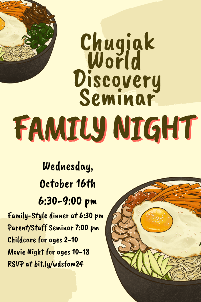 We can’t wait to see you! RSVP now at bit.ly/wdsfam24 to let us know you’re coming so we can have enough soup! We will have childcare for ages 2-10 provided by WDS students. Kids & siblings 10-18 can join their siblings in the student union for movie night. All family members 18+ are invited to join in the parent seminar while students are in the movie. Our goal is to “train” the parents on how to seminar so that in the spring we can have a full-family seminar with everyone ages 10 and up. Infants and babies under 2 are welcome to join their parents in the seminar rooms. Please RSVP today so we can make sure we have enough food and facilitators.