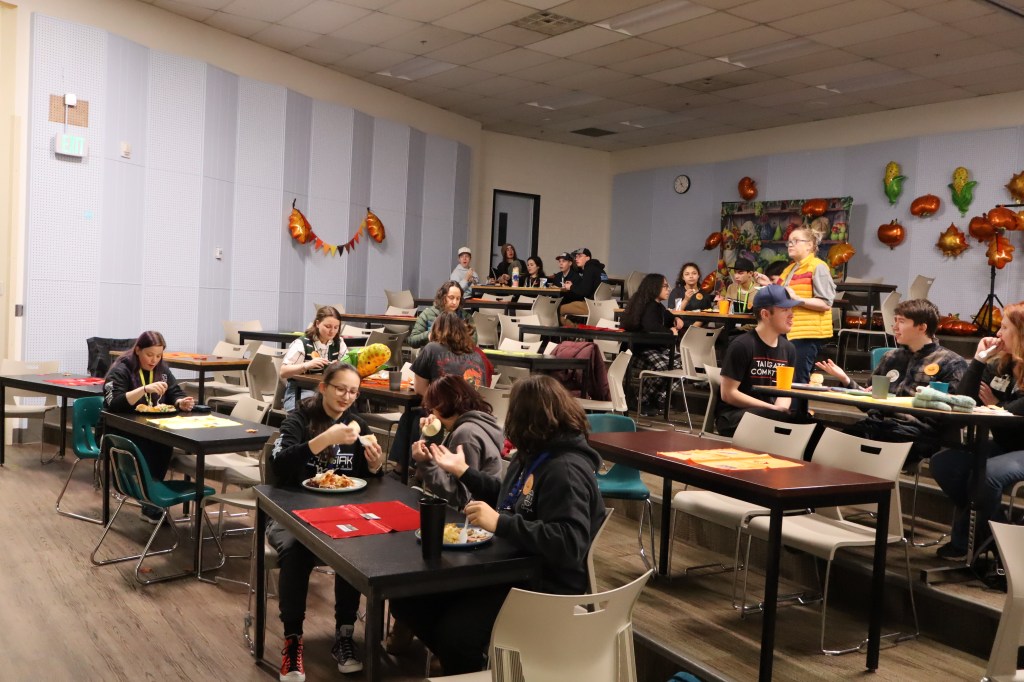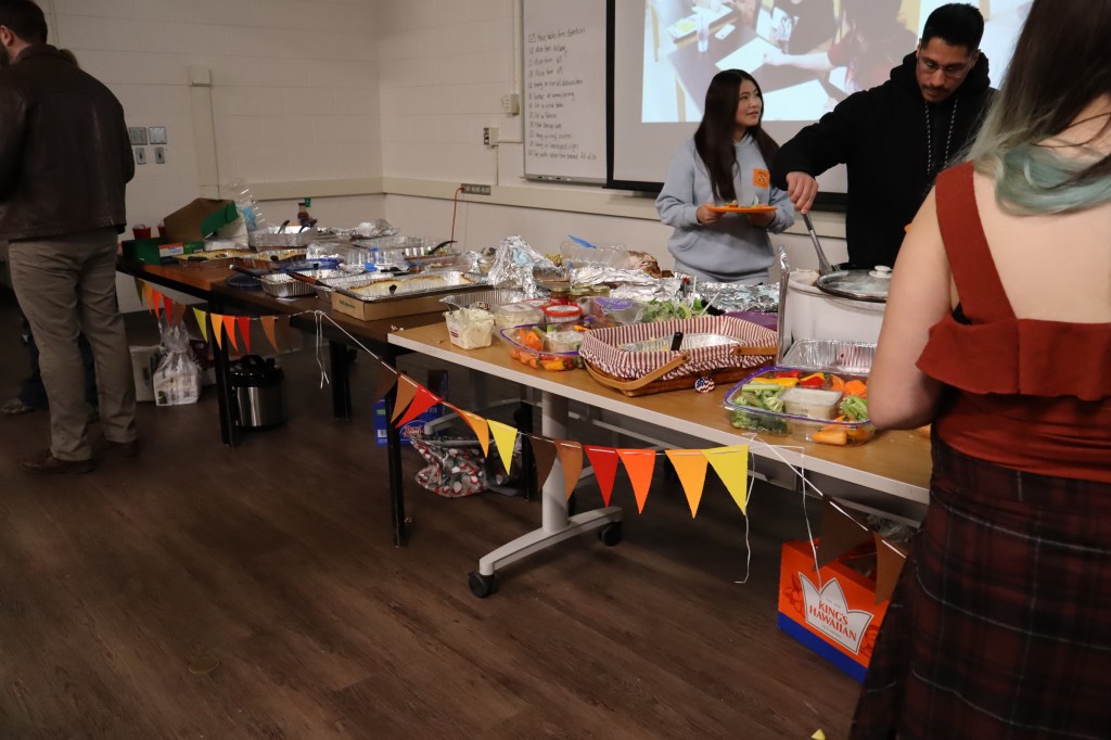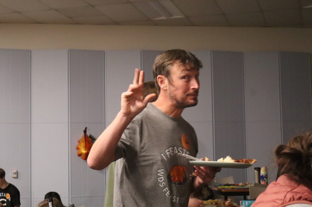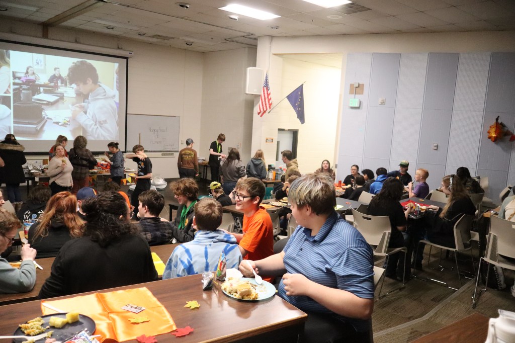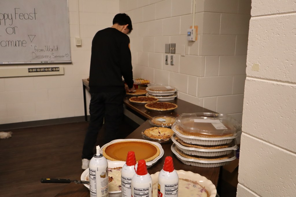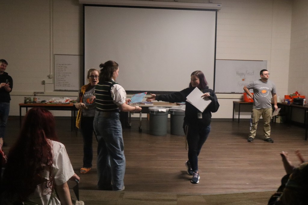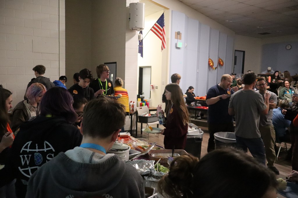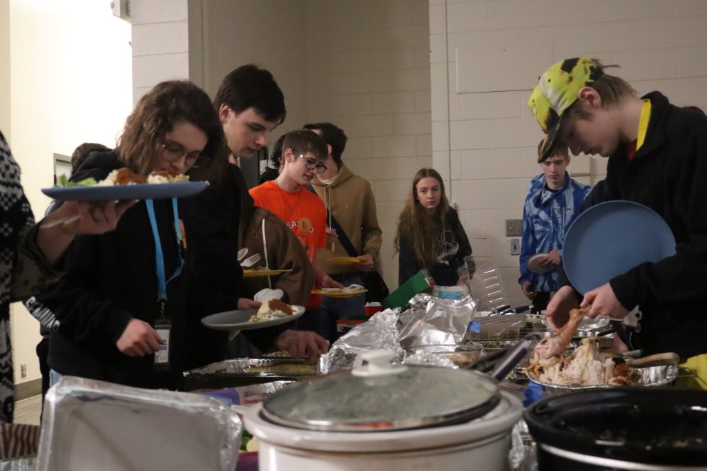 Feast or Famine 2024 was held on November 22nd and raised over $1,000 and hundreds of pounds of canned goods for local food programs. Feast or Famine is a food scarcity simulation, representing the 39% of people world wide who do not have access to adequate daily nutrition. Students and staff draw from a bowl either “feast” or “famine.” The number of slips correlates to current statistics. Those who draw feast get an excellent thanksgiving potluck; those who draw famine are taken to a side room for white rice and water.