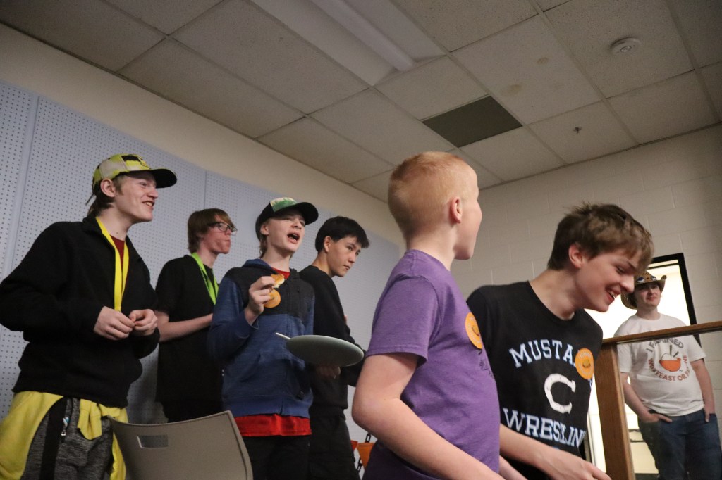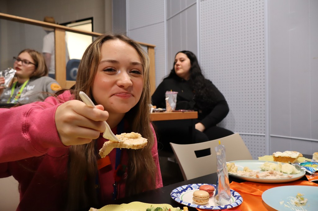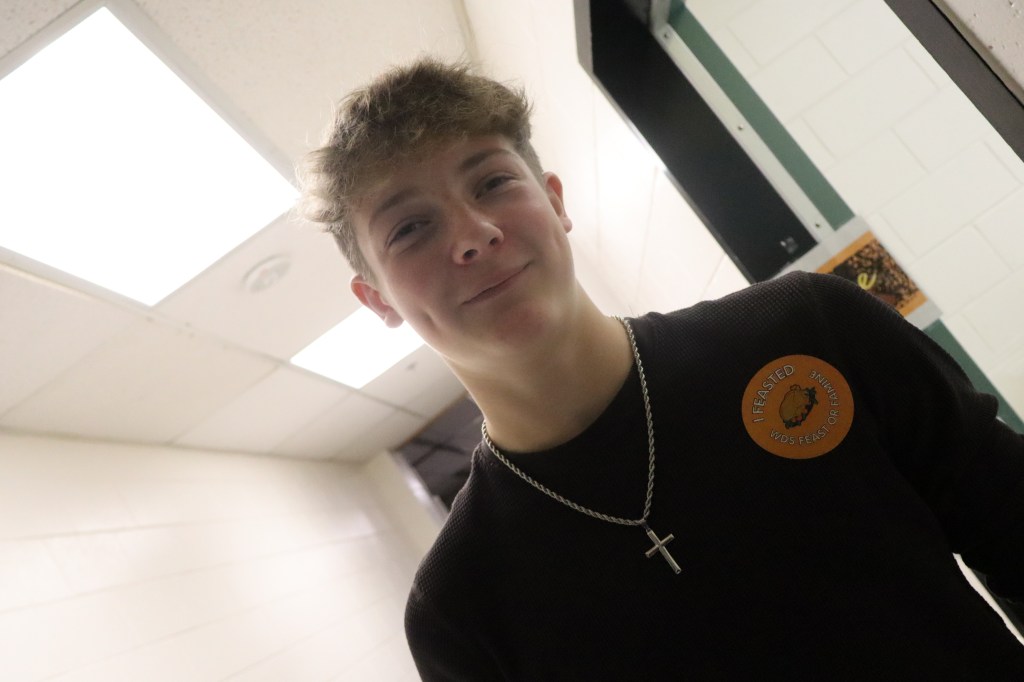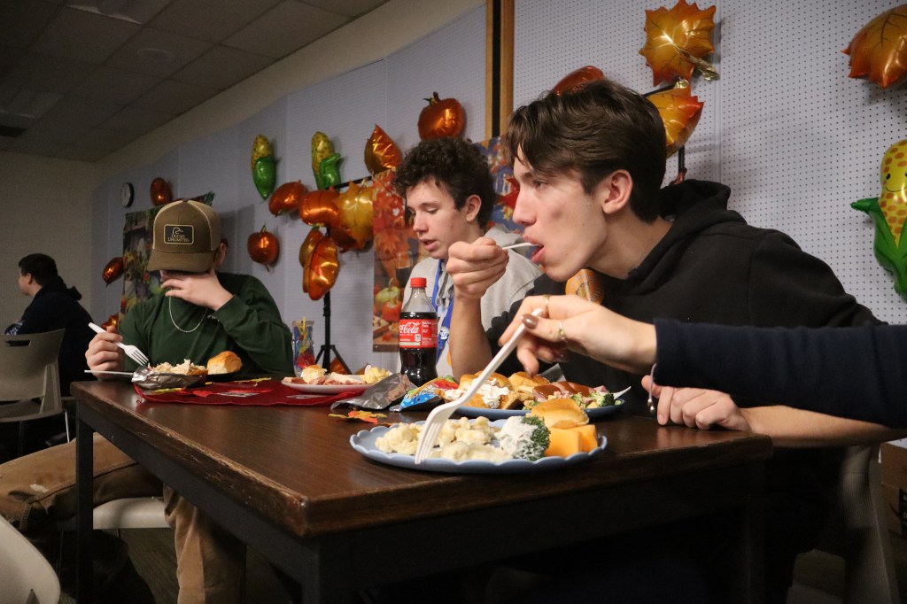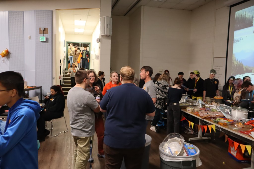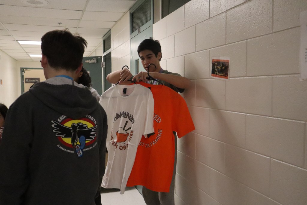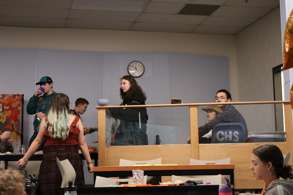 Feast or Famine 2024 was held on November 22nd and raised over $1,000 and hundreds of pounds of canned goods for local food programs. Feast or Famine is a food scarcity simulation, representing the 39% of people world wide who do not have access to adequate daily nutrition. Students and staff draw from a bowl either “feast” or “famine.” The number of slips correlates to current statistics. Those who draw feast get an excellent thanksgiving potluck; those who draw famine are taken to a side room for white rice and water.