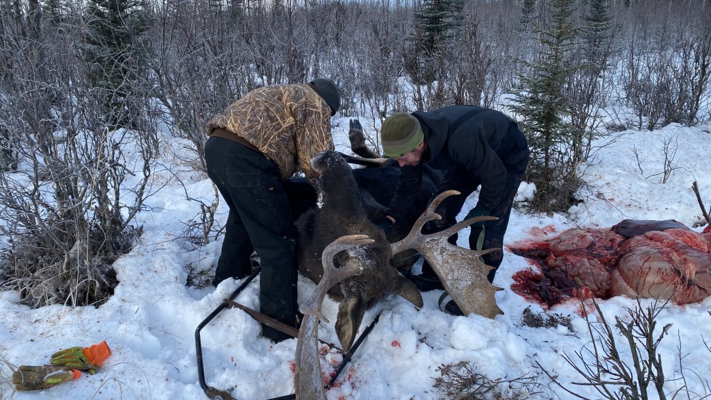 “The goal was to also learn the skinning and quartering process, but unfortunately I wasn’t able to get the moose out of the woods whole,” he said.