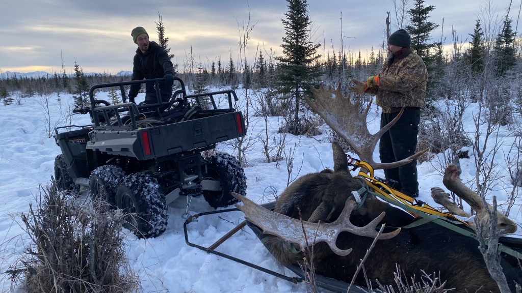 Finding and shooting the animal wasn’t easy. Due to low snow conditions, Mason said it took him three weekends of hunting before he finally shot the young cow moose in a swampy area near Willow.