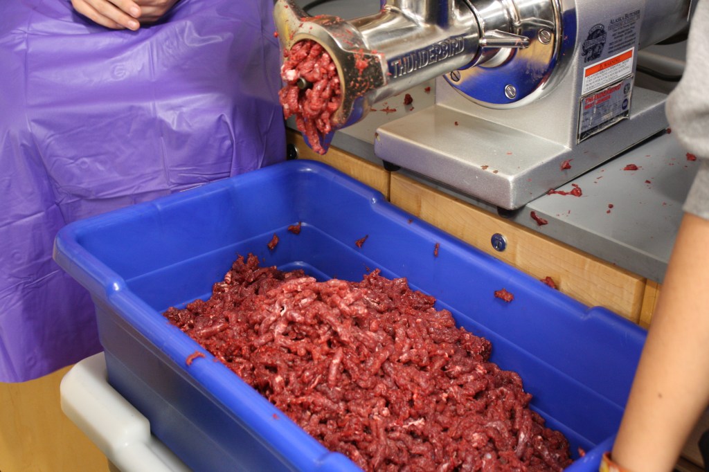 Students who get to participate in this activity learn about harvesting a moose with a proper permit; how to transport that animal safely; how to quarter a moose (when we are lucky enough to be able to get it out of the field whole); how to remove the meats and process the whole animal well; how to safely process and grind the meat; how to package and store it safely; and the importance in Alaskan culture of being able to live in harmony with the land and source food from our own spaces.